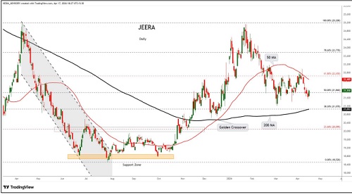 Jeera trading range for the day is 21530-22210.