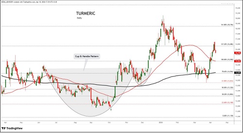 Turmeric gained amid lower-than-normal arrivals of the new crop in major physical markets.