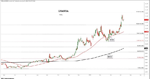Dhaniya trading range for the day is 12882-13370.