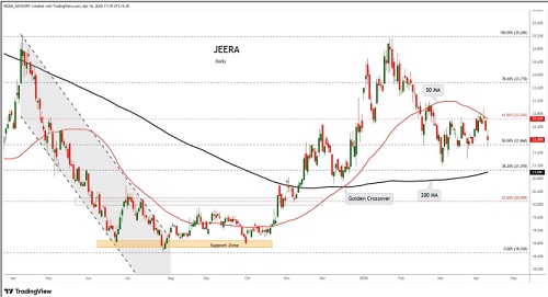 Jeera trading range for the day is 21530-22570.