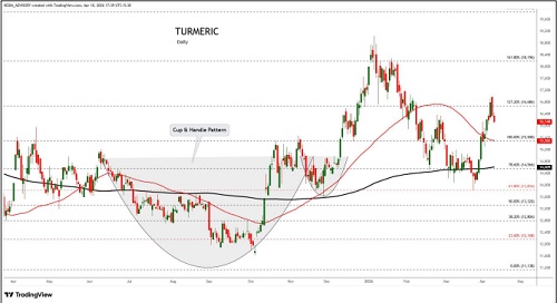 Turmeric trading range for the day is 15880-16592.