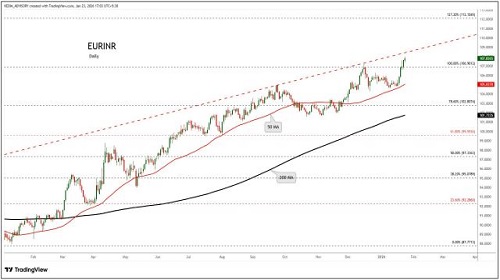 EURINR trading range for the day is 106.61-107.75.