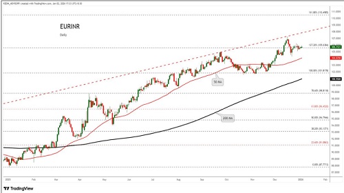 EURINR trading range for the day is 105.49-106.33.