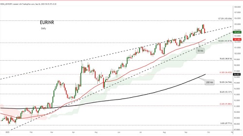 EURINR trading range for the day is 104.05-104.91.