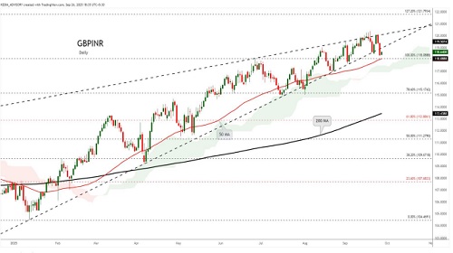 GBPINR trading range for the day is 119.35-119.99.