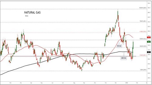 Natural gas soared as extreme cold forecasts boosted demand expectations and raised supply risks.