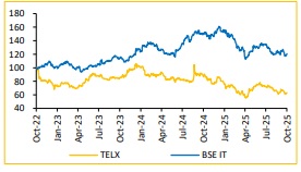 TELX reported an in-line performance for Q2FY26 with modest sequential recovery and early signs of operational stabilisation. While near-term challenges persist in Automotive and Media & Communications, H2FY26 growth visibility has improved on the back of large Transportation deal ramp-ups and a strong Healthcare pipeline. Margins are expected to recover gradually with higher utilization and operational efficiencies. We maintain our PE multiple at 28x, arriving at a Target Price of INR 4,120 based on average FY27E–FY28E EPS of 147.3. We reiterate our SELL rating, while noting that sustained doubledigit growth momentum in the Transportation & HLS vertical, margin expansion, and improved deal wins in Media & Communications could act as potential re-rating triggers.