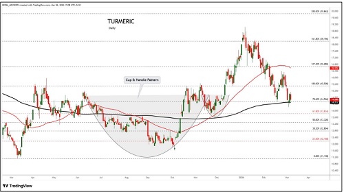 Turmeric dropped as fresh turmeric arrivals in Erode are expected to increase sharply over the next 10-15 days.