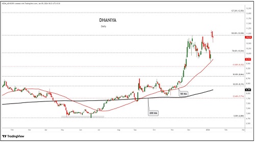 Dhaniya trading range for the day is 10972-11328.