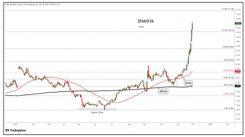 Dhaniya trading range for the day is 9662-11022.