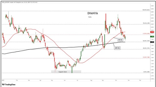 SELL DHANIYA NOV @ 8350 SL 8450 TGT 8250-8150. NCDEX