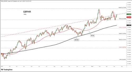 GBPINR trading range for the day is 125.89-127.19.