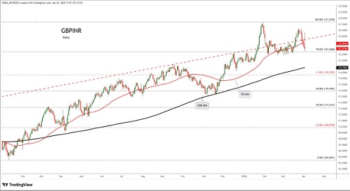 GBPINR trading range for the day is 123.28-124.46.