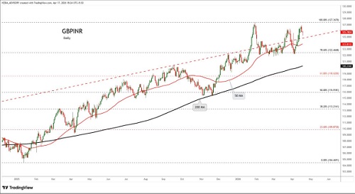 GBPINR trading range for the day is 125.01-126.41.