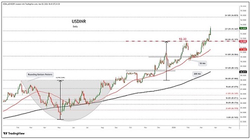 Persistent foreign portfolio outflows and upcoming NDF and fiscal-year-end maturities continued to generate strong dollar demand.