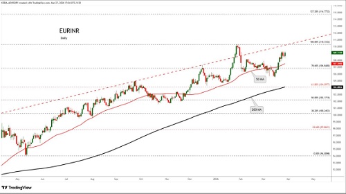 EURINR trading range for the day is 108.07-110.57.