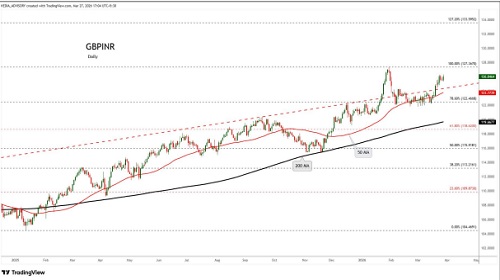 GBPINR trading range for the day is 123.68-127.48.