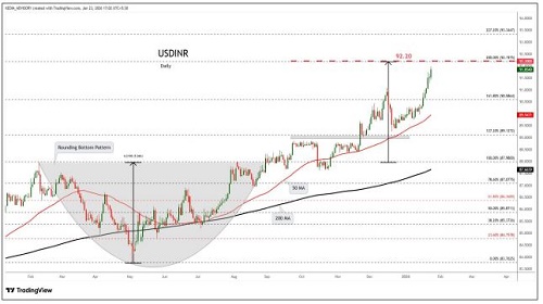 USDINR trading range for the day is 91.54-92.34.