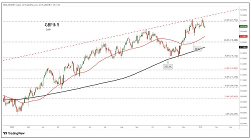 GBPINR trading range for the day is 120.96-121.86.