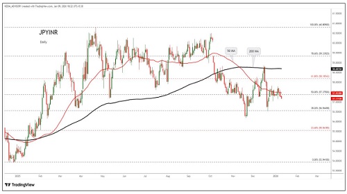 JPYINR trading range for the day is 56.03-59.23.