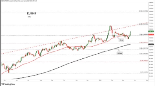 EURINR trading range for the day is 107.67-109.07.
