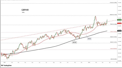 GBPINR trading range for the day is 124.63-125.99.