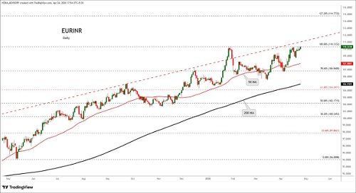 EURINR trading range for the day is 110.36-112.36.