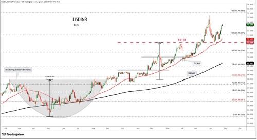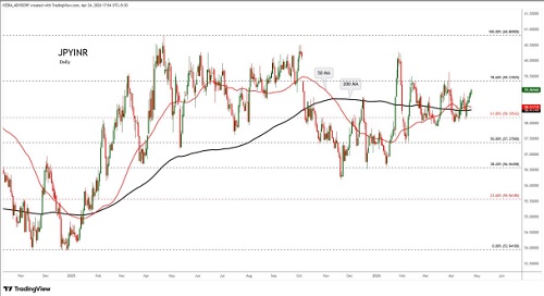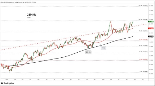 GBPINR trading range for the day is 127.66-128.5.