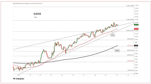 EURINR trading range for the day is 103.47-104.47.
