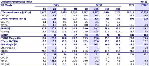 * IT services likely to report 0.3% CC growth, driven by a onemonth inorganic contribution from the Harman acquisition.