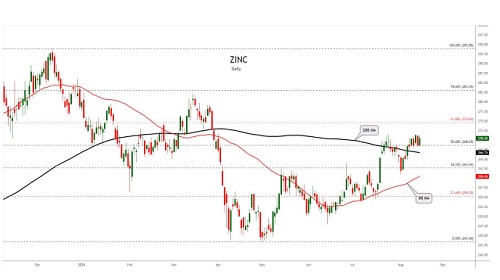 Zinc trading range for the day is 261.8-267.8.