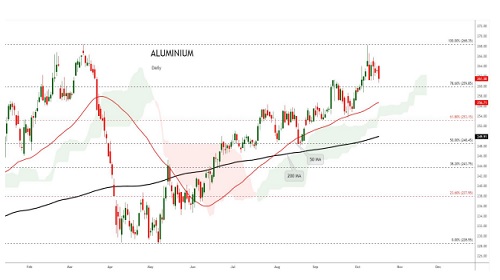 Aluminium trading range for the day is 258.9-265.5.