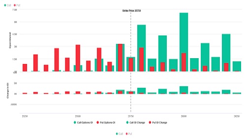 * Call writing is seen at 26000 then 25900 strike while Put writing is seen at 25700 then 25500 strike.
