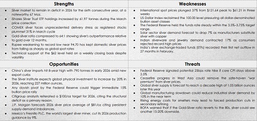 High domestic rates above Rs.2.5 lakh/kg have severely impacted the gift-driven silverware market. In India, retail volume is down significantly, though this is being offset by a 20% surge in silver ETF and digital bar investment.