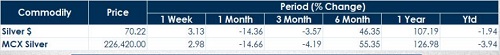 * Dollar Strength: DXY rally made silver costlier globally, weakening international physical demand.