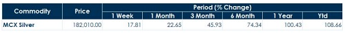 Silver has delivered one of its most extraordinary yearly performances in modern market history, doubling in value through 2025. MCX Silver surged nearly 20% in just 10 days, touching Rs 1,84,000/kg, while global spot silver rallied 21% over the same period. This explosive rise is the result of multiple high-impact triggers—US critical-mineral designation, tariff fears, repeated short squeezes, chronic global supply tightness, and powerful ETF inflows, all occurring in quick succession. The rally gained further steam as technical charts confirmed a cup-and-handle breakout, signaling sustained bullish momentum.