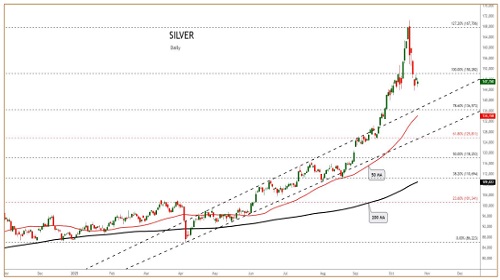 Silver prices fall as US-China trade optimism weakens safe-haven demand.