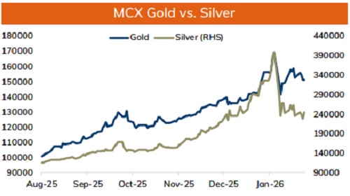 * Spot gold is likely to rise towards $5100 as long as it holds above $4900. MCX Gold April is expected to move higher towards 158,500 as long as it trades above 152,000.