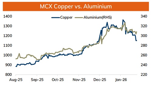 * MCX Copper Feb is expected to slip towards Rs.1150 level as long as it stays below Rs.1200 level. A break below Rs.1150 level prices may be pushed towards Rs.1125-Rs.1120 level