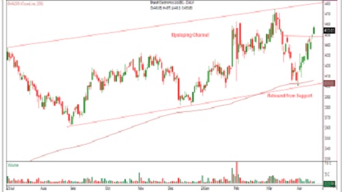 Buy Bharat Electronics Ltd CMP 455.65 Range 453-456 SL 441 Target 481