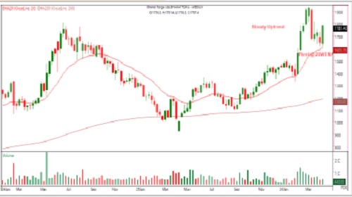 Buy Bharat Forge Ltd CMP 1781.40 Range 1776-1782 SL 1720 Target 1900