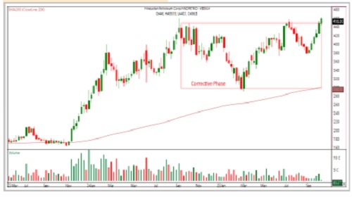 * Hindustan Petroleum exhibited strong bullish momentum, sustaining above key moving averages, including the 50, 100, and 200 DEMA.