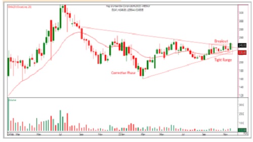 * HUDCO displays a strengthening structure, marked by a decisive breakout from an extended consolidation phase accompanied by rising volume, indicating renewed bullish momentum.