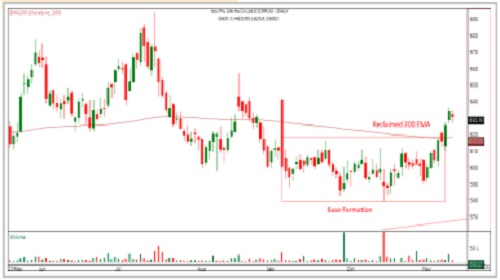 * ICICIPRULI has exhibited a decisive bullish breakout above its short- to medium-term moving averages, indicating a positive shift in momentum.