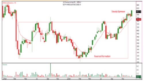 * The stock has witnessed a fresh breakout from an elevated base, supported by a strong bullish candle and a notable surge in volumes.