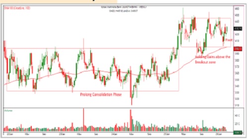 Buy Kotak Mahindra Bank Ltd CMP 430.70 Range 428-431 SL 415Target 458