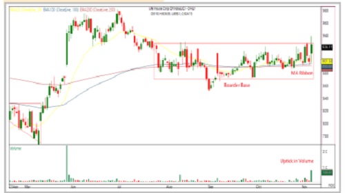 * A sequence of higher highs and higher lows with upside range breakout indicates trend reinforcement.