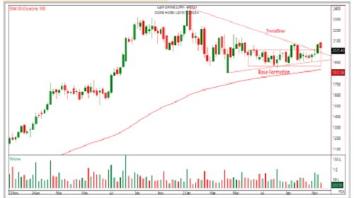 * The pharma index is witnessing base formation, and LUPIN is moving largely in sync with this trend.