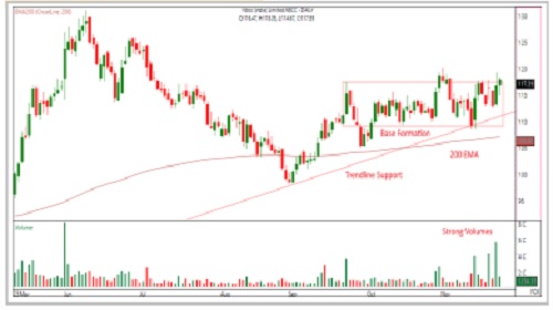 * A consistent formation of higher highs and higher lows, coupled with steady volume participation, indicates accumulation and improving trend outlook.