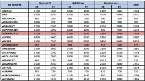 3) The Highest Addition & Liquidation in CE OI denotes whether the stock can witness buying or see selling.